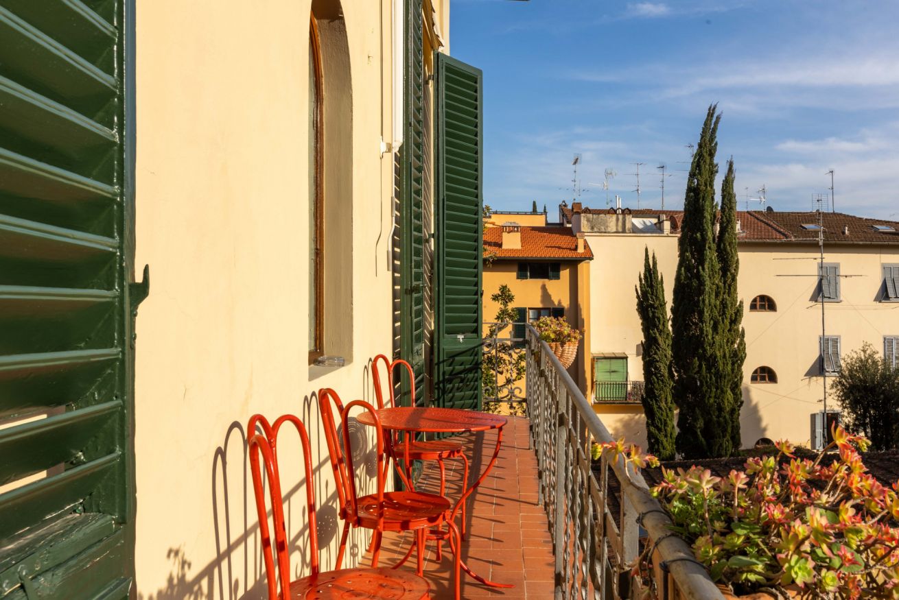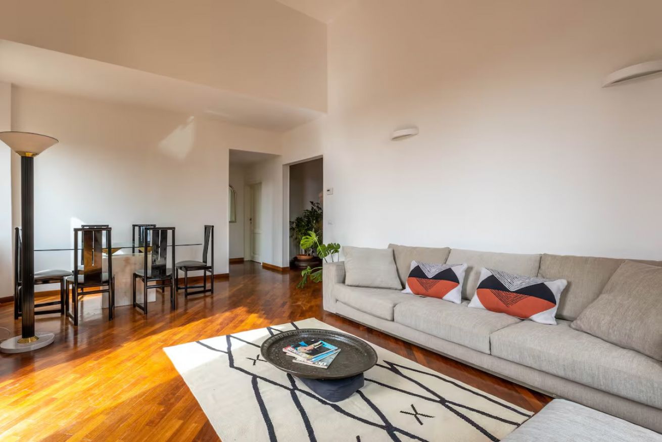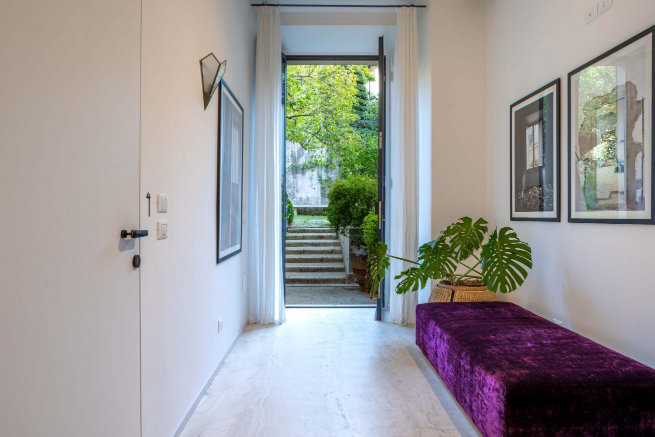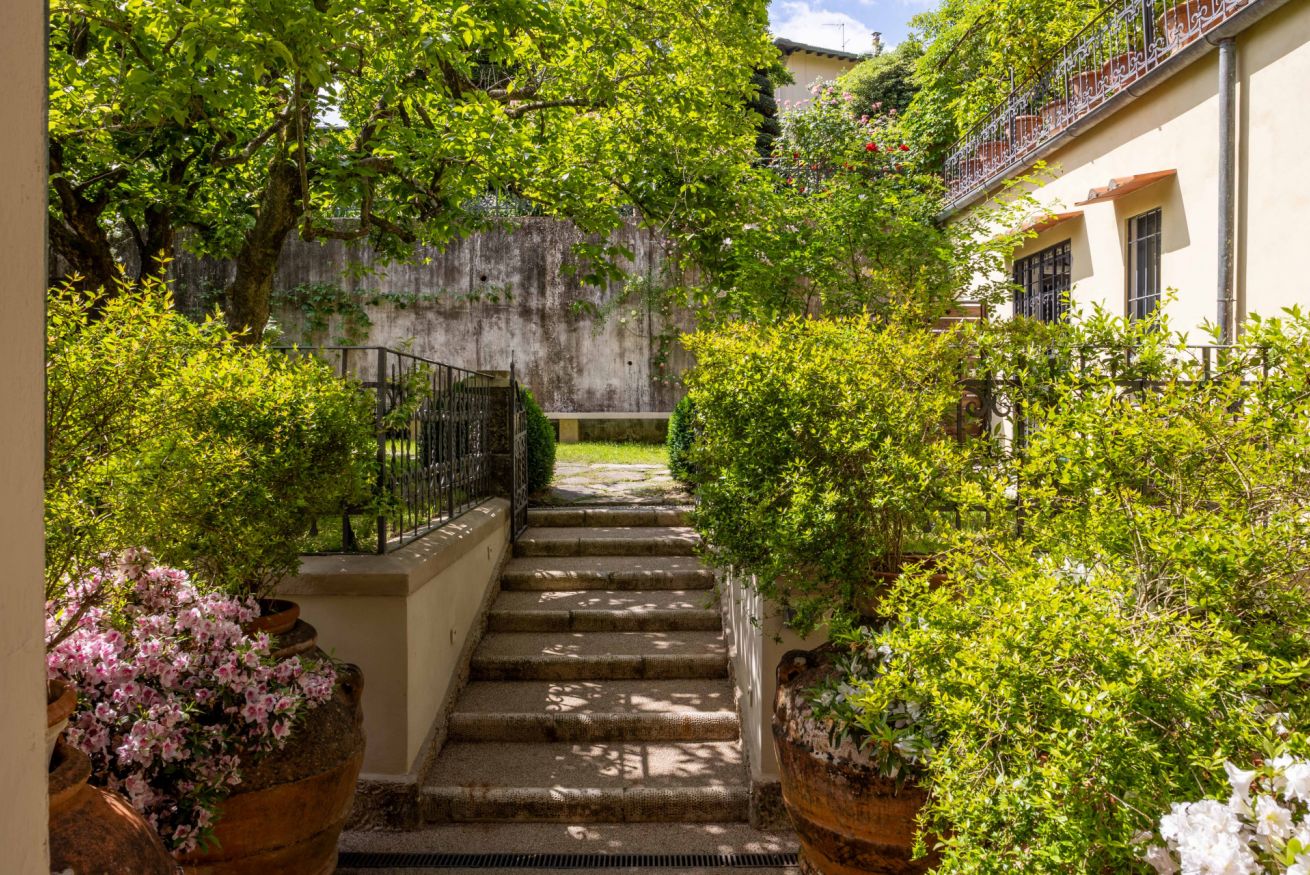 The apartment is quiet and refined, featuring a balcony with a view of a beautifully maintained Italian garden, offering a peaceful spot to relax and enjoy the atmosphere of the city.