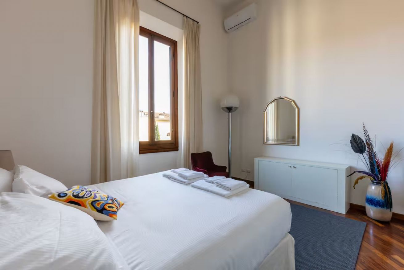 This elegant two-bedroom apartment combines modern design with comfort in one of the most exclusive residential areas near the historic center of Florence. Situated on the 2nd floor (without lift) of a 1926 building, it is bright, sophisticated, and intimate, making it an ideal retreat for your stay.